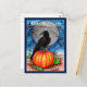 Tableau original de Sandra Gale d'un grand corbeau noir, perché sur un citrouille sous la pleine lune la nuit. Grand design pour les enfants et les adultes et une façon amusante de célébrer un Halloween éffrayant et effrayant!
