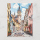 Cette carte postale offre une belle illustration lunatique représentant les rues de la ville lacustre de Hallstatt, en Autriche. Il s'agit d'une carte postale idéale pour les voyageurs se rendant dans les destinations magiques de l'Autriche.