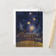 Décorez une boîte aux lettres d'amis avec un peu de fantaisie avec cette carte postale avec un tableau original de scène nocturne d'une fille debout sur le toit d'un rocher à New York avec son chien accrochant des étoiles dans un ciel bleu nuit. Toute personne qui aime les peintures fantaisistes et New York City appréciera cette carte postale artistique.