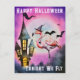 Carte Postale Happy Halloween Flamant rose chauves-souris Haunte