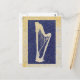 Une silhouette de harpe en bleu profond sur un arrière - plan gris et or subtil, texturé dans une texture de pierre. Simple mais beau et classique. . . une carte postale pour tous les amateurs de harpe.