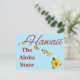 Aloha ! Hawaï — notre joyau dans le Pacifique. Hawaii se compose de huit îles PRINCIPALES : Niihau, Kauai, Oahu, Maui, Molokai, Lanai, Kahoolawe et la "Grande île" d'Hawaii. Le "Big Island" devient de plus en plus grand. On estime que l'île d'Hawaii s'étend sur plus de 15 hectares chaque année à cause du volcan Kilauea qui éclate depuis près de 30 ans. Bien que le surnom officiel soit "L'État d'Aloha", Hawaii est aussi connu comme "Les îles d'Aloha" et "Paradis". Et pas étonnant. L'île est luxuriante et tropicale avec des produits agricoles exotiques comme les ananas, le cacao, la vanille et le café. Et les insulaires sont bien conscients de leurs atouts, ayant adopté des lois qui interdisent les panneaux publicitaires et, dans certains coques, interdisent la construction de bâtiments plus grands que les palmiers. .. rien pour gâcher les vues spectaculaires. Et ce n'est pas seulement les variétés extraordinaires de plantes et de fleurs, les plages des îles hawaïennes peuvent avoir de l'or, du rouge, du noir ou même du sable vert. Les îles Hawaiiennes ont une histoire belle et riche, qui remonte jusqu'à 124 A.D. Outre la pléthore de touristes chanceux pour passer des vacances dans cet état charmant, les gens qui y vivent sont, en général, divisés en deux catégories : les "Hawaiiens" sont ceux qui ont une ascendance autochtone des îles ; les "locaux" sont ceux qui sont nés et élevés là-bas mais n'ont pas de lien ancestral. Beaucoup ignorent que lorsque Pearl Harbor a été attaqué en 1941, Hawaii n'était pas encore devenu un état. Hawaï est devenu notre 50ème État glorieux en 1959. Ce magnifique design, célébrant l'DERNIER Etat officiel aux Etats-Unis, offre un aperçu des îles d'Hawaii, remplies de leur fleur d'Etat, l'hibiscus jaune étonnant. Ceci est superposé avec une flamme rouge "Hawaii". Ces cartes postales délicieuses peuvent être achetées avant vos vacances afin que vous ne perdiez pas de temps à les chercher et que vous puissiez vous concentrer sur toute la beauté autour de vous. Paire avec les timbres-poste correspondants pour une présentation encore plus impressionnante.