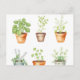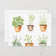 Carte Postale Herbes en pot à l'aquarelle sur fond crème
