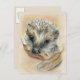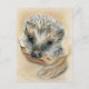 Cette carte postale est agrémentée d'oeuvres d'art pastel représentant un très jeune hérisson aux feuilles de magnolia séchés aux couleurs chaudes de l'automne.