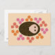 Cette carte postale présente une jolie bande dessinée d'un petit hérisson brun épicé, enroulé dans une boule qui a l'air endormi. Le Hérisson est entouré de jolies fleurs. Le hérisson est marron avec un visage crème et les fleurs sont rouges, orange et roses.