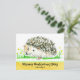Carte postale avec un hérisson sucré dans un patch de fleur sauvage jaune illustré d'encre noire et d'aquarelle. Idéal pour les échanges de cartes postales !