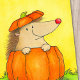 Carte Postale Hérisson Mignon dans Citrouille d'Automne