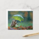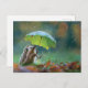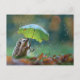 Carte Postale Hérisson mignon tenant un parapluie de feuilles