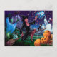 Carte Postale Heureuse Sorcière Halloween avec les amis de cimet
