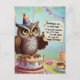Carte Postale Hibou portant un chapeau d'anniversaire debout sur