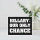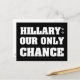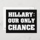 Ces cartes postales noires de la campagne d'Hillary Clinton contiennent les mots Hillary : Notre seule chance dans une police élégante, moderne et classique! Si vous êtes un démocrate et que vous voulez montrer votre soutien à Hillary lors de la prochaine élection présidentielle, c'est la meilleure façon de faire passer le message ! ! Ça a l'air super sur les boutons de campagne et les t-shirts ! Électez Hillary !