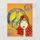 cette petite tête rouge qui aime la paix est si boho hippie chic que vous ne pouvez pas aider mais voulez traîner par son hippie van RV et chanter des chansons folkloriques par le bon fire. Couleurs vives et beaucoup de caractère dans cette carte postale de dessin animé fantaisiste