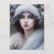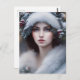 La carte postale de vacances présente une belle princesse en fourrure blanche casquette et enveloppée de feuillage d'hiver dans un portrait de style vintage. Un joli portrait thématique de Noël créé avec un logiciel générateur d'IA