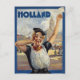 Affiche de voyage vintage pour la Hollande, montrant une fille en costume national traditionnel.