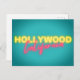 Style typographique vintage caractéristiques "Hollywood, Californie" en or et rose néon texte sur vieilles / rétro aqua arrière - plan