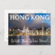 Carte postale de l'horizon de Hong Kong avec les mots "Souhaitez-vous être ici"