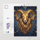 A mystical golden Ram Aries Astrology sign postcard with Aries traits on the back.