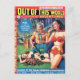 La bande dessinée vintage couvre l'art. Deux femmes dans de petites tenues "futuristes". L'une a été attaquée par des aliens et l'autre se tient dans l'horreur. Un homme d'espace mignon dans un casque d'espace clair, pas de chemise et pantalon bleu agenouillé sur le groupe.