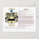 Votre illustre nom de famille Armoiries imprimées pour que tous puissent le voir. Idéal pour les réunions de famille ou simplement pour montrer votre "Manteau de famille". Nous pouvons mettre ceci ou n'importe quel blason sur n'importe quel produit présenté ici. Pour référence, nous utilisons "Rietstap's Armorial General", "Encyclopedia of Heraldry", "Fairbairdn's Book of Crest", "The Book of Family Crest", "The General Armory of England, Scotland, Ireland, and Wales", "HPS Surnames". S'il y a une Crest et/ou une Moto de la Famille, nous l'ajouterons. Notre objectif est d'être aussi précis que possible.