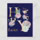 Une belle illustration florale moderne avec des éléments abstraits avec les lettres HAPPY en fausse feuille d'or et le mot Pâques en typographie classique sur un arrière - plan bleu marine foncé. Il y a de l'espace sur le dos de la carte postale pour votre propre message de vacances de Pâques à vos amis et votre famille. N'hésitez pas à modifier la couleur de l'arrière - plan si vous n'êtes pas fan de bleu marine, et vous pouvez également changer la police et la couleur de police de votre message personnel.