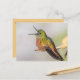Postcard featuring a Buff-Tailed Coronet Hummingbird with its beak open. Photo taken in Ecuador.
