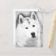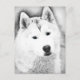 Carte Postale Husky Sibérien Blanc avec Dessin d'Art Blue Eyes