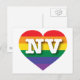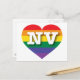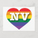 Cette carte postale présente un coeur avec un design orgueil arc-en-ciel et les lettres majuscules audacieuses, blanches, NV, l'abréviation officielle du Nevada, l'état argenté. Montrez vos vraies couleurs, soutenez l'égalité dans le mariage et célébrez le gay pride. Le verso de la carte postale est vide, en attendant votre texte customisé ou vos sentiments manuscrits.