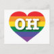 Cette carte postale présente un coeur de fierté arc-en-ciel avec les lettres majuscules blanches et audacieuses OH, l'abréviation officielle pour Ohio, l'état de buckeye. Montrez vos vraies couleurs, soutenez l'égalité dans le mariage et célébrez le gay pride.