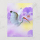 Les ailes de l'ibis blanc et les pastels doux des pansies font une belle image pour cette carte postale.