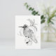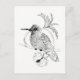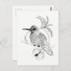 Carte postale noire et blanche avec colibri et illustration graphique de fleurs.