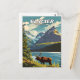 Carte postale décorative illustration rétro du parc national de Glacier.