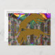 Carte postale Cougar Imaginaire unique avec numériquement collage amélioré d'assemblage d'art fluorescent original photographié en lumière UV y compris imaginaire paysage silurien, architecture monolithique, et cougar figure design créé par l'artiste Trois Gorgons Ralph Jones inspiré par l'imagerie stylisée de l'art ancien et le dossier fossile de l'ère géologique connu sous le nom de la période Silurienne.
