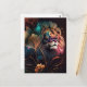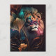 Carte Postale Imaginaire, magnifique lion avec fleurs art IA