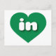 Cette carte postale est dotée d'un coeur vert vif contenant des lettres coques inférieures arrondies et audacieuses, blanches, une abréviation ludique pour Indiana, l'état hoosier. Le verso de la carte postale est vide, en attendant vos sentiments manuscrits ou le texte customisé.