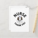 Carte de remerciement pour une infirmière, design original de Nisha Prabhu. Un design vibrant et chaleureux avec des graphiques de stéthoscopes et des icônes joyeuses liées aux soins infirmiers. Cette carte postale est un petit témoignage de notre immense gratitude. Exprimez votre appréciation aux infirmières exceptionnelles de votre vie avec cette charmante carte "Merci infirmière" ! Parfaite pour partager des messages sincères de gratitude. Que ce soit pour une occasion spéciale, la Semaine d'appréciation des infirmières ou simplement pour dire "merci", cette carte capture l'essence de ce que signifie être sur le front des soins.