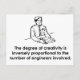 Le degré de créativité est inversement proportionnel au nombre d'ingénieurs impliqués.