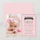 Carte Postale Invitation au baptême rose, Baptême