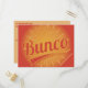 La carte postale Bunco Invitation comprend un design vintage et rétro à l'ambiance orange, avec des éléments de swash et de burst. Une façon amusante d'invitation vos amis de quartier pour venir jouer au jeu de dés Bunco à votre maison.