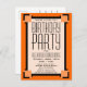 Une invitation audacieuse pour fêter un anniversaire à envoyer à des amis et à la famille. Cette carte postale Invitation d'anniversaire Art déco orange peut être customisée avec le nom et les détails de la fête. Motif art déco géométrique dans trois tons orange et noir.