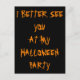 Carte Postale Invitation de fête d'Halloween Cryptic Black Orang