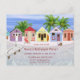 Cette invitation modifiable présente des maisons colorées de plage des Caraïbes avec des palmiers. Le texte sur le devant de la carte est modifiable, alors n'hésitez pas à modifier les détails ainsi que le style, la taille et la couleur de la police pour le personnaliser. Cette carte d'invitation peut être utilisée pour les retraites, les pendaisons de crémaillère, les anniversaires, les mariages de destination, etc.