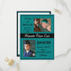 Classe de - avec le nom de votre école et la photo. Cette invitation turquoise et noire par carte postale est une façon moins coûteuse de répandre le mot que vous voulez obtenir l'argent de graduation de la famille et des amis! Supprimez tous les exemples de texte avant d'ajouter le vôtre ! Merci et félicitations !