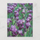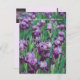 Carte postale élégante aux iris violets symbolisant la sagesse et l'amitié. Le texte sur le devant et sur le dos est modifiable