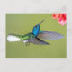 Carte postale avec un colibri à col blanc bleu et vert en vol. Photo prise à Rancho Naturalista, province de Cartago, Tayutic, Costa Rica.