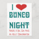 Ce design graphique amusant aux couleurs rétro affirme : J'Aime La Nuit Bunco, Où Un Gal Peut Avoir Une Conversation Adulte. Un prix amusant ou un cadeau pour votre prochaine soirée Bunco.
