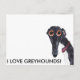CARTE POSTALE J'ADORE LES GREYHOUNDS !
