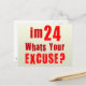 Carte Postale J'ai 24 ans, quelle excuse tu as ? Anniversaire
