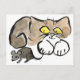 James, le chaton, a sa patte sur la queue de la souris. Heureusement son une souris et James d'animal familier est veillant lui ne court pas loin. Sumi-e, peinture d'encre de style japonais en couleurs. Artiste - Ellen Miffitt studio img752 des neuf vies