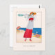 Carte postale avec illustration de mode Art déco Sur La Falaise de Francisco Javier Gosé (1876-1915), illustrateur espagnol. Une femme en robe rouge et bleue avec un casquette en paille sur le sable au bord de l'eau. Une numériquement image vintage restaurée de la Gazette du Bon Ton.