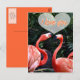 Deux beaux flamants roses, on dirait que les sont sur le point de s'embrasser ou de se serrer dans les bras avec les mots Je t'aime au centre d'un coeur au-dessus d'eux.